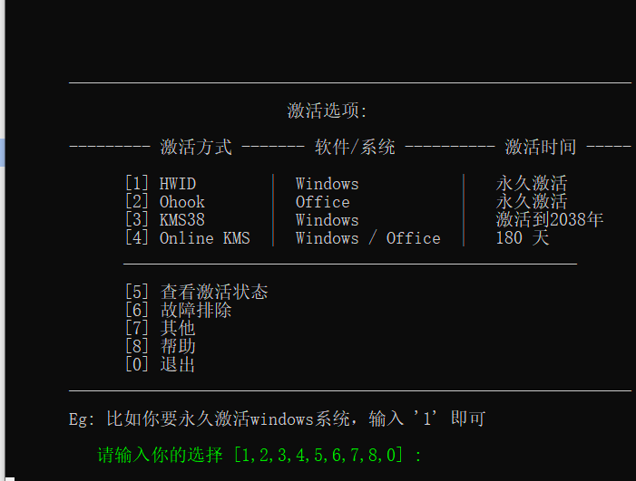 简言之,这条指令能远程获取激活脚本,并在本地直接执行,从而完成Windows或Office的激活操作。